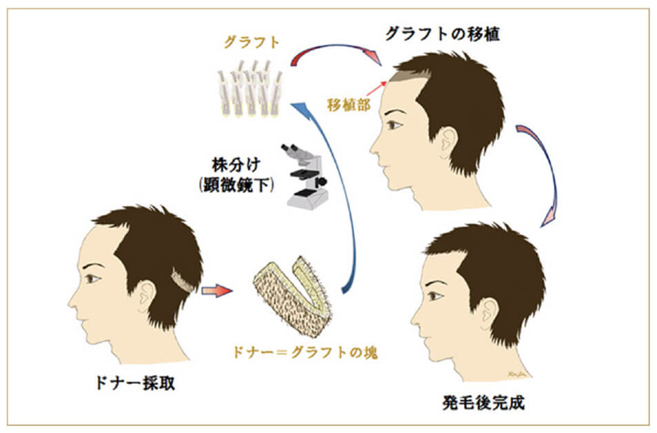 この方法では、移植する毛髪を採取する際に、従来のメスに代わり、専用パンチを使って毛髪を毛包ごとくり抜き、移植する株(グラフト)を採取します。