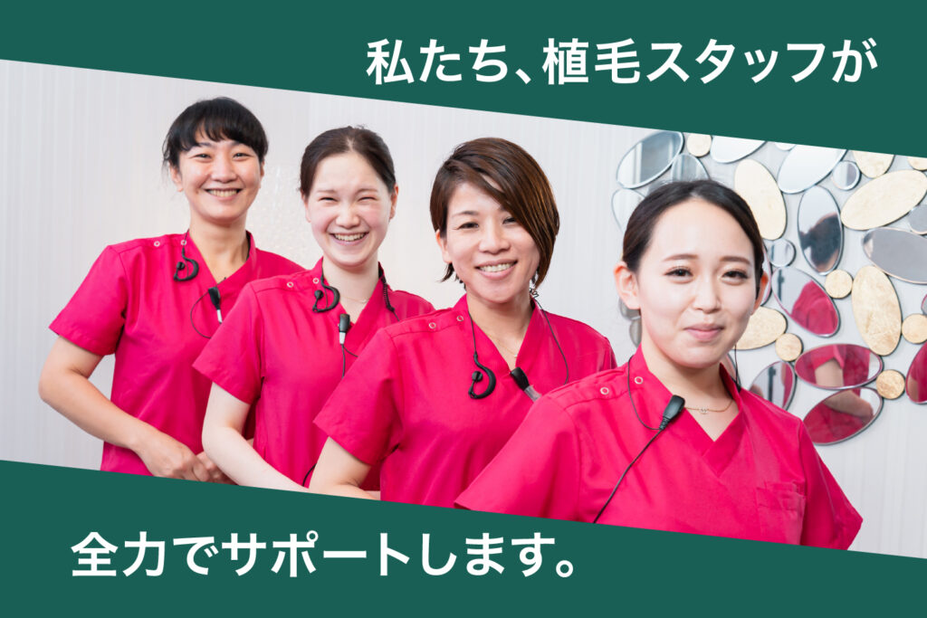 手術翌日に専任スタッフによるシャンプーを行います。移植した部位を傷つけないように丁寧に洗髪を行うことにより頭皮の違和感を軽減させて清涼感を得られます。