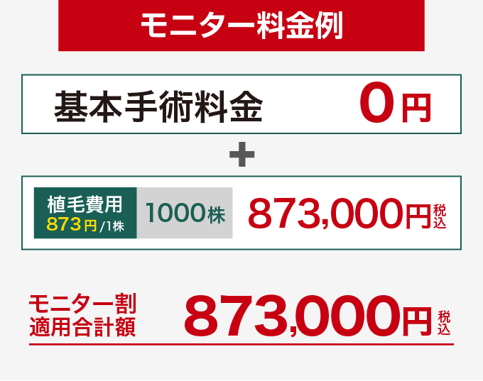 | 術式 | グラフト数 | 顔出しモニター | 部分モニター |